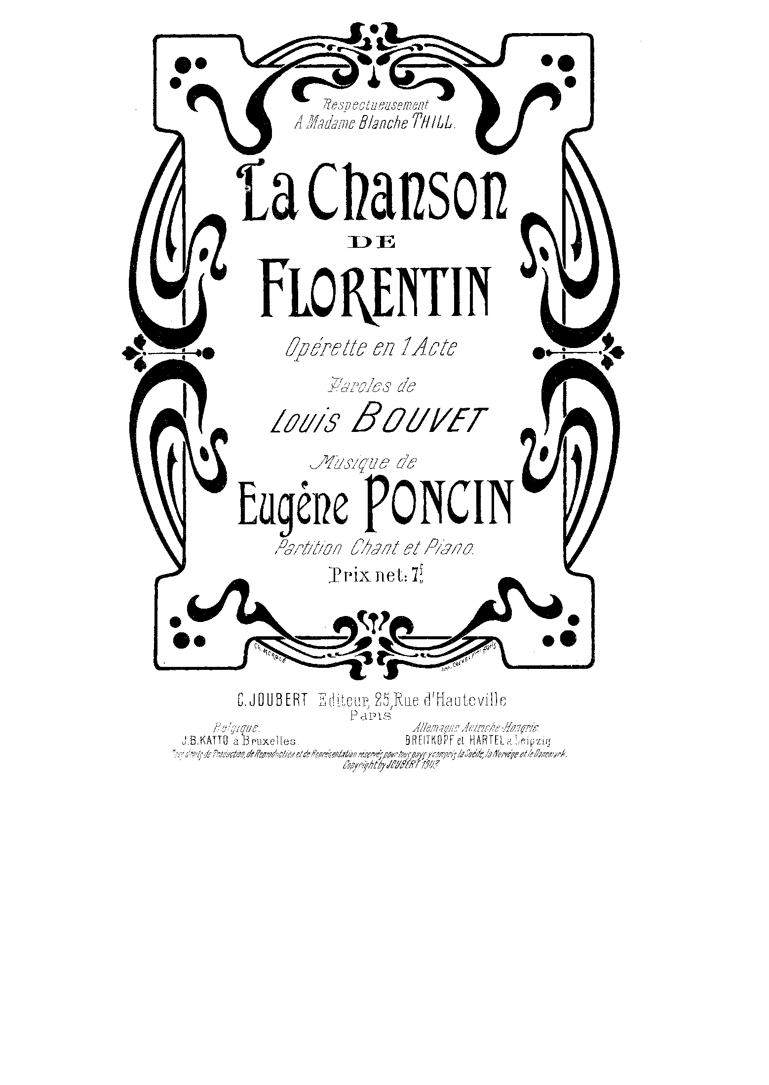 | Dedication | A Madame Blanche Thill |