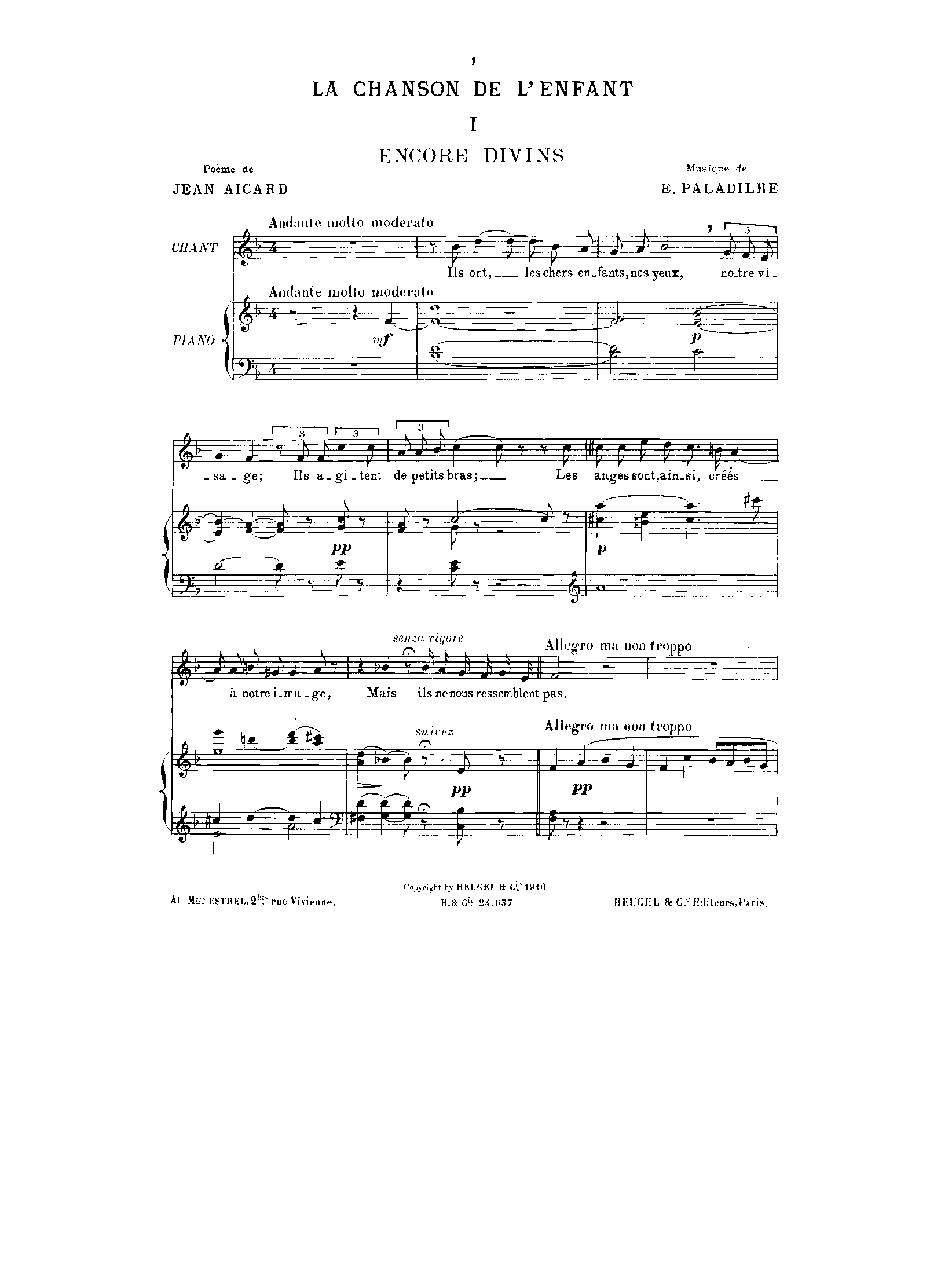 Publisher. Info. Paris: Heugel & Cie., 1910. Plate H. & Cie. 24637.