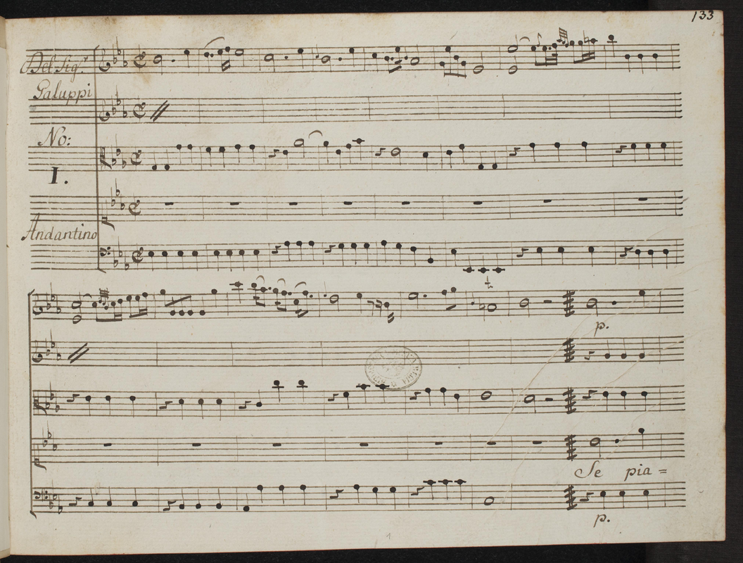 This file is based on high-resolution images obtained from the source using a method explained on this page. Full SLUB resolution. Sächsische Landesbibliothek, Dresden (D-Dl): Mus.1-F-21,3. 1. Act I, Sc.2. Aria of Vitellia: Se piacere a me tu vuoi. 2. Act I, Sc.13. Aria of Vitellia: Fra il contrasto de' pensieri. 3. Act I, Sc.11. Aria of Sesto: Parto ma tu ben mio. 4. Act II, Sc.15. Aria of Sesto: Se mai senti spirarti.