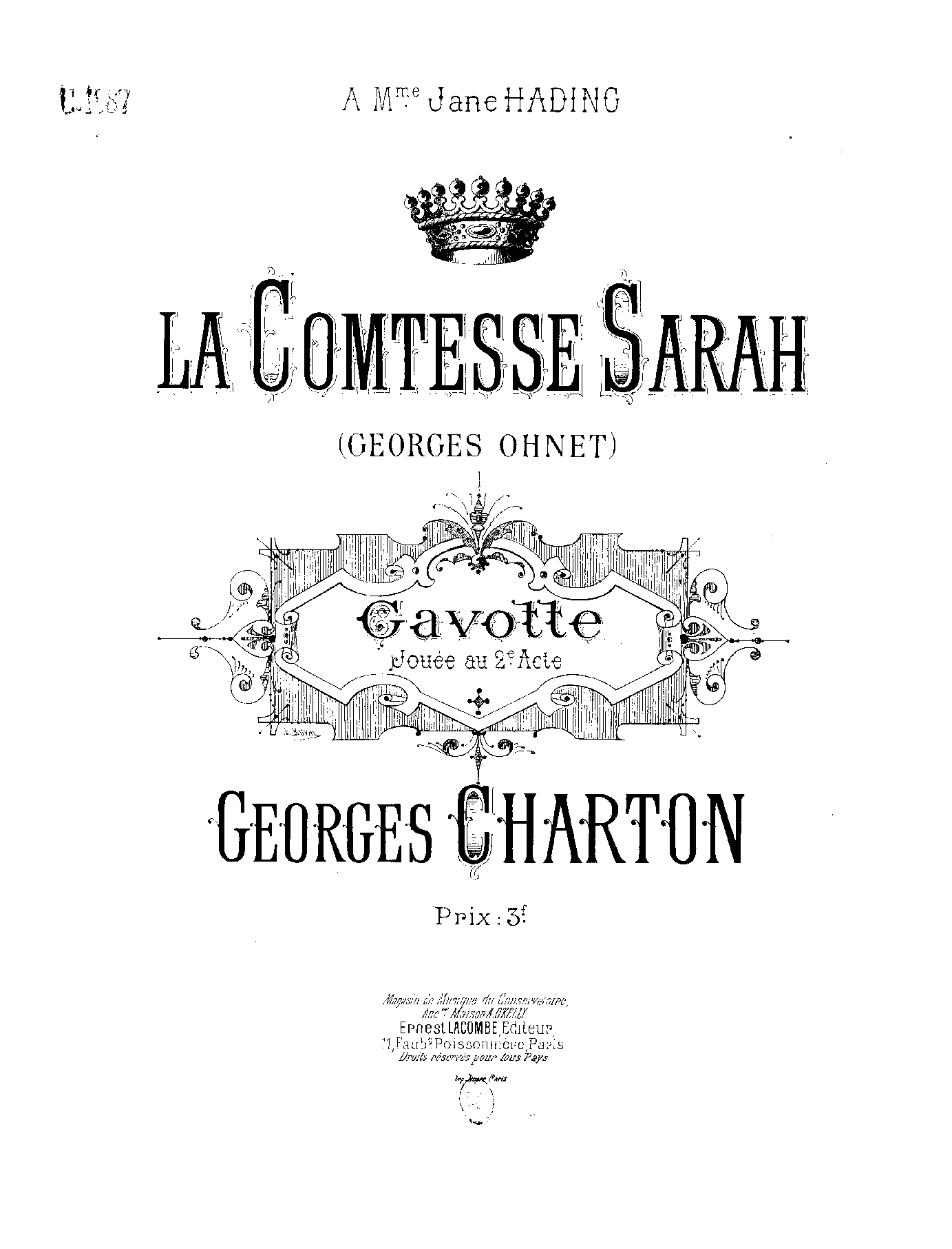 | Copyright Information | Publication noted in the Bibliographie de la France : 76e année, 2e série, Nº 5, 29 Janvier 1887, p.69, reg.324. (Gavotte, arr. piano) |