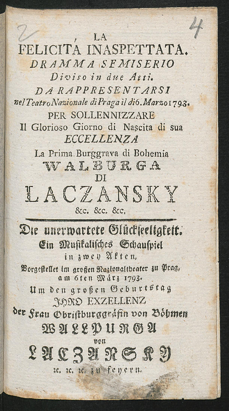 | First Performance. | 1788-02-24 in St. Petersburg, Hermitage Theatre |