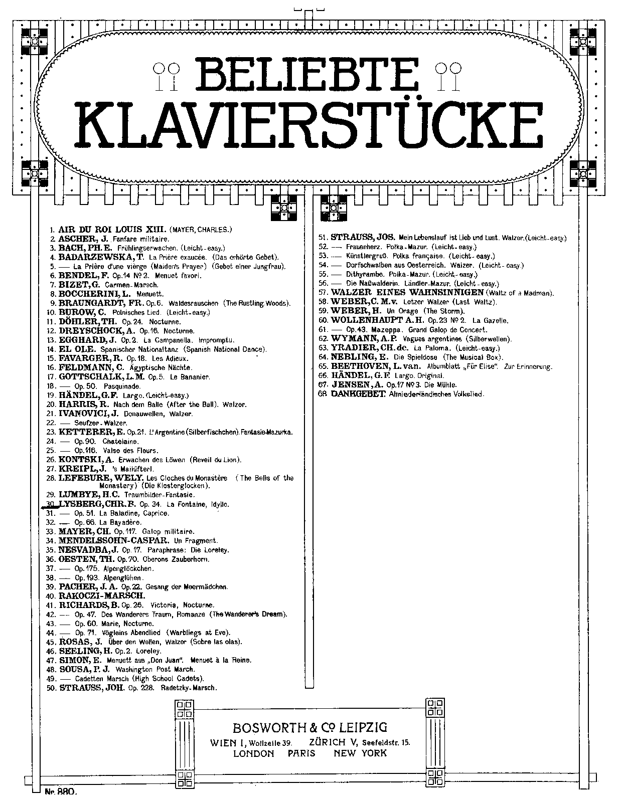 | Genre Categories | Pieces; For piano; Scores featuring the piano; For 1 player |