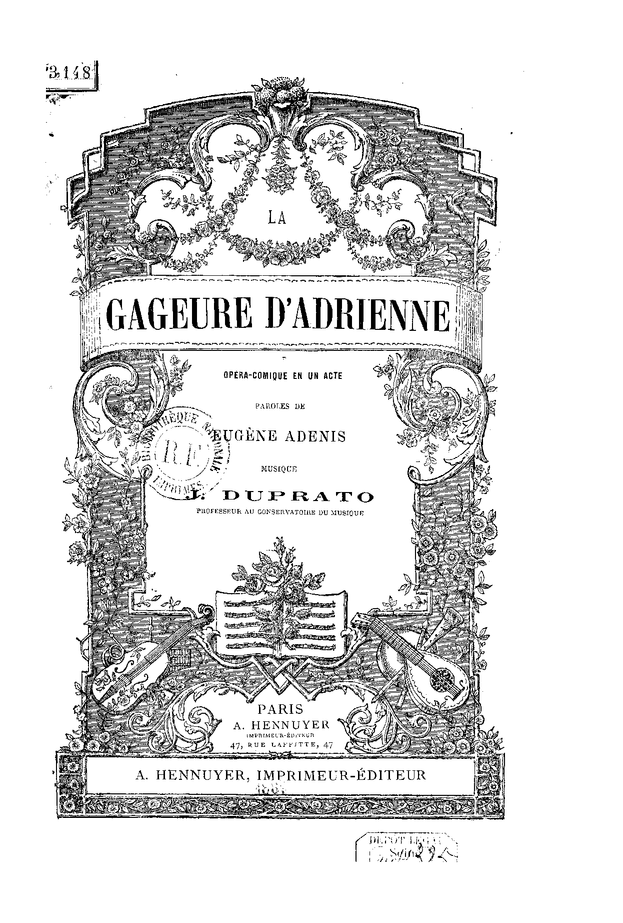 | Copyright Information | Publication noted in the Bibliographie de la France : 78e année, 2e série, Nº 25, 22 Juin 1889, p.414, reg.2705 (vocal score). |