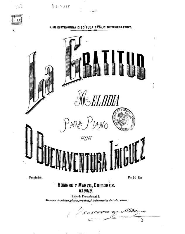 Publisher. Info. Madrid: Romero y Marzo, n.d.[1879]. Plate R.y M. 5379.