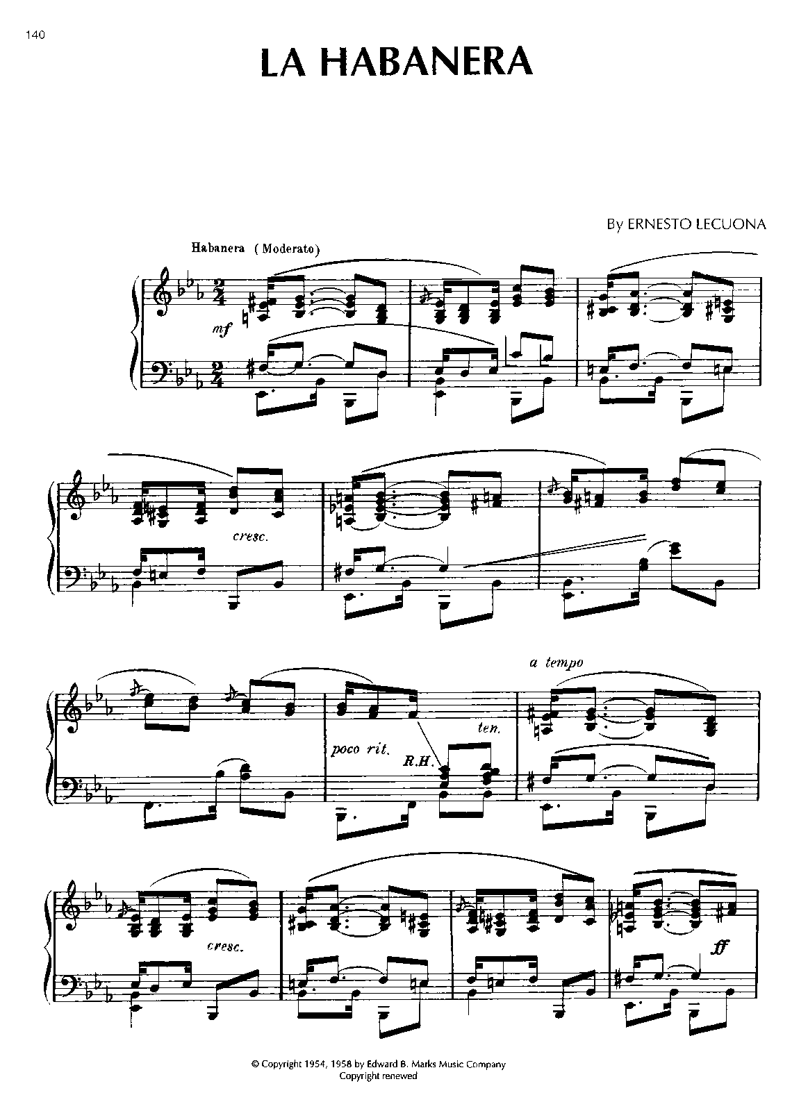 Reprinted Ernesto Lecuona: Piano Music. 2nd ed. (pp.140-143)