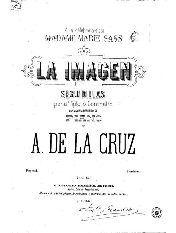 | Dedication | "A la eminente artista Señora Fanny Rubini-Scalisi" and "A la célebre artista Madame Marie Sass" |