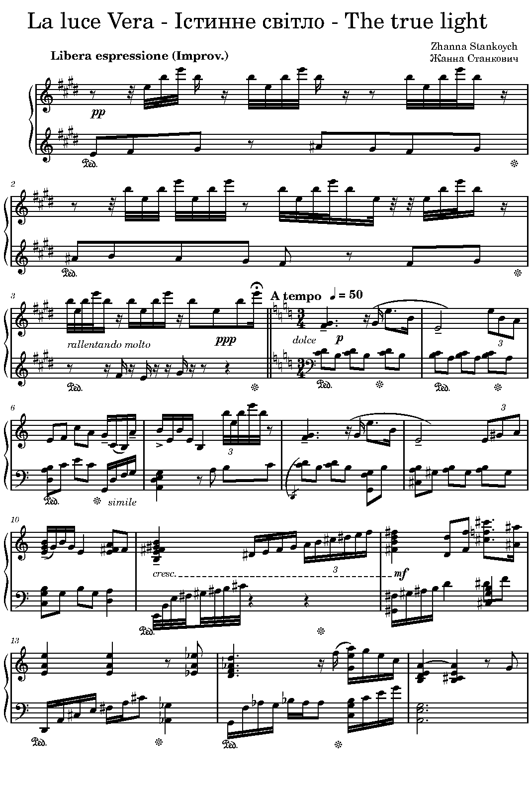 | Extra Information | La luce Vera - Істинне світло - The true light. A piece designed for piano, dedicated to the Ukranian pianist and teacher Vera Povidaychyk |
