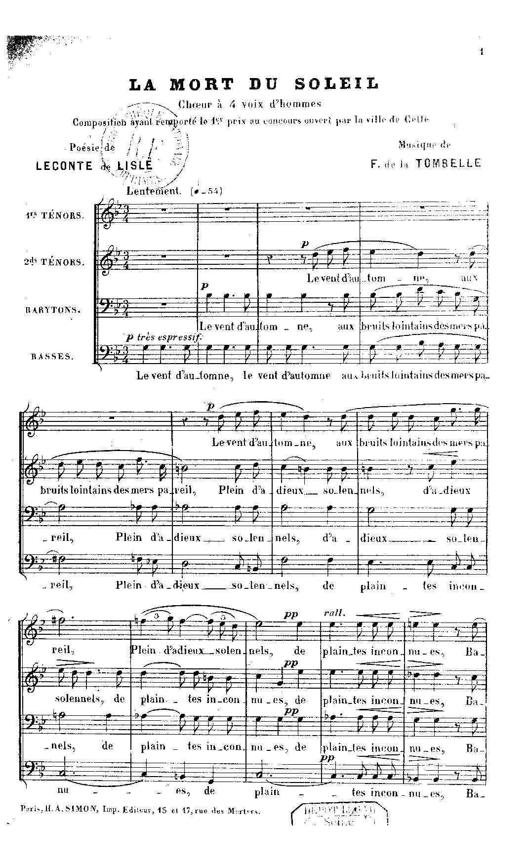 Composition ayant remporté le premier prix au concours ouverts par la ville de Cette. (First prize winner in the open competition in the town of Cette (France, ca.1889)).
