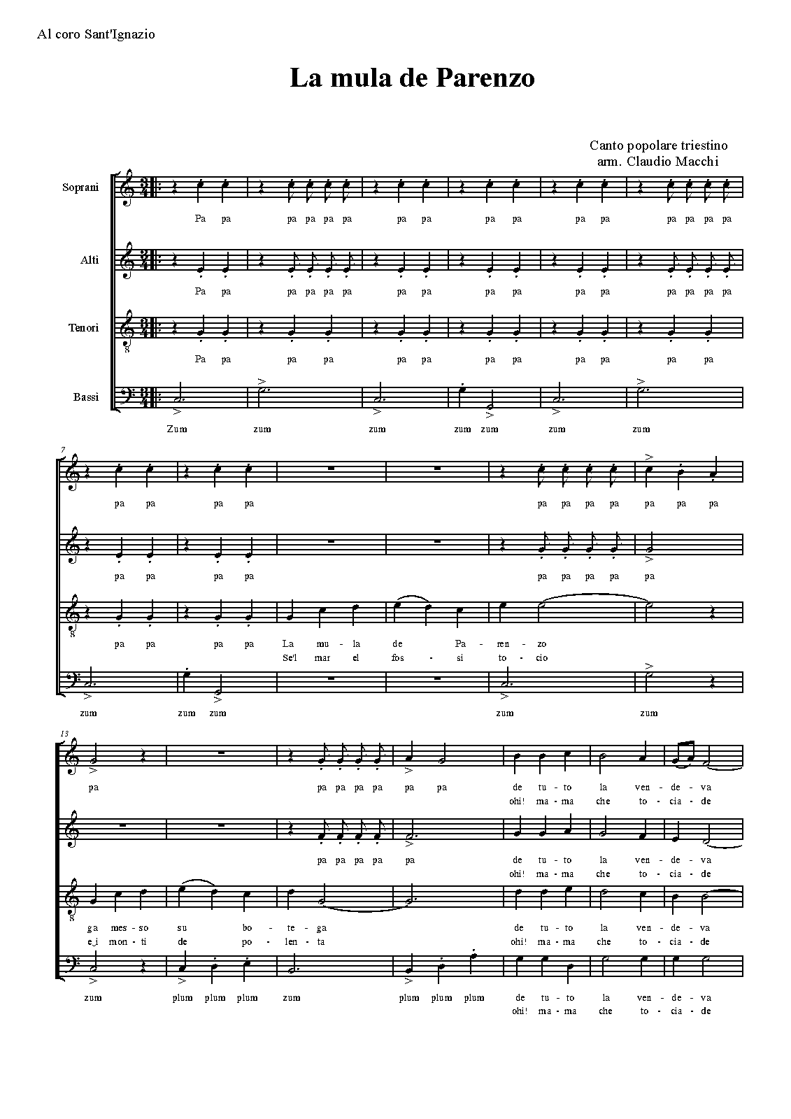 | Dedication | Al coro San'Ignazio di Gorizia |