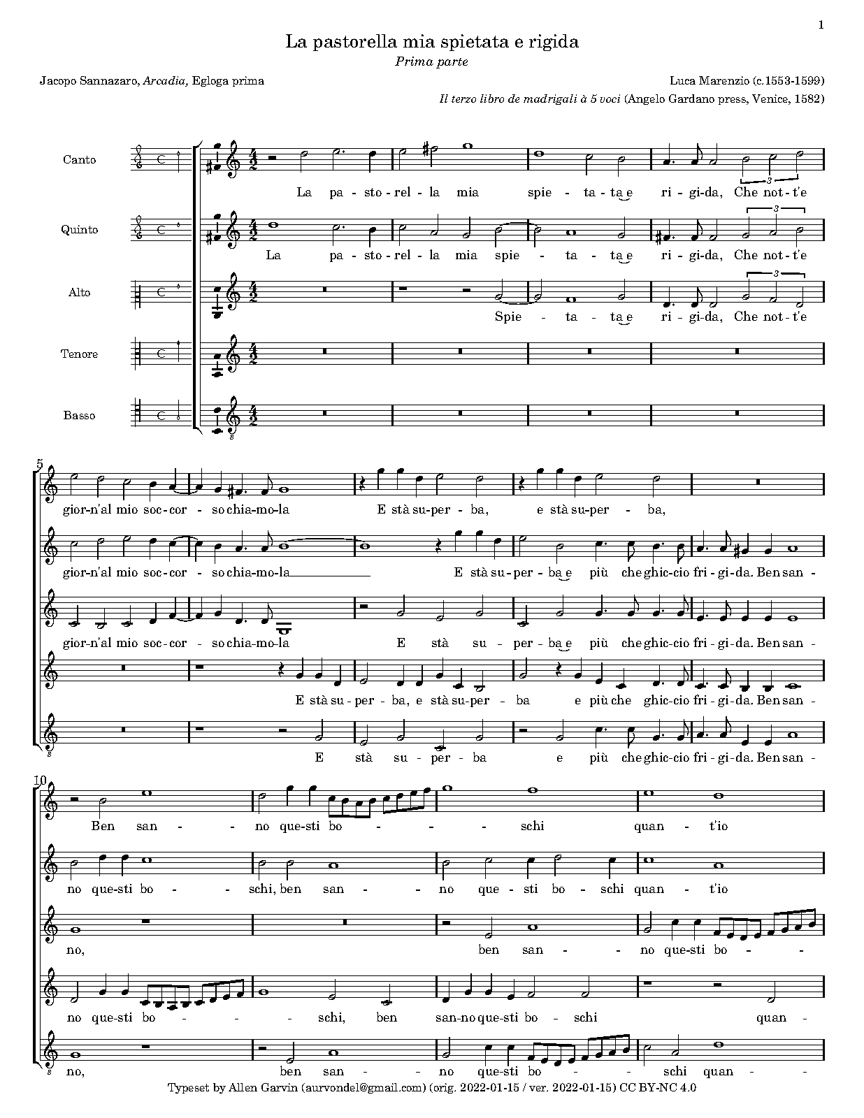 | First Publication | 1582 in Il terzo libro de madrigali à 5 voci (Venice: Angelo Gardano press, Venice) |