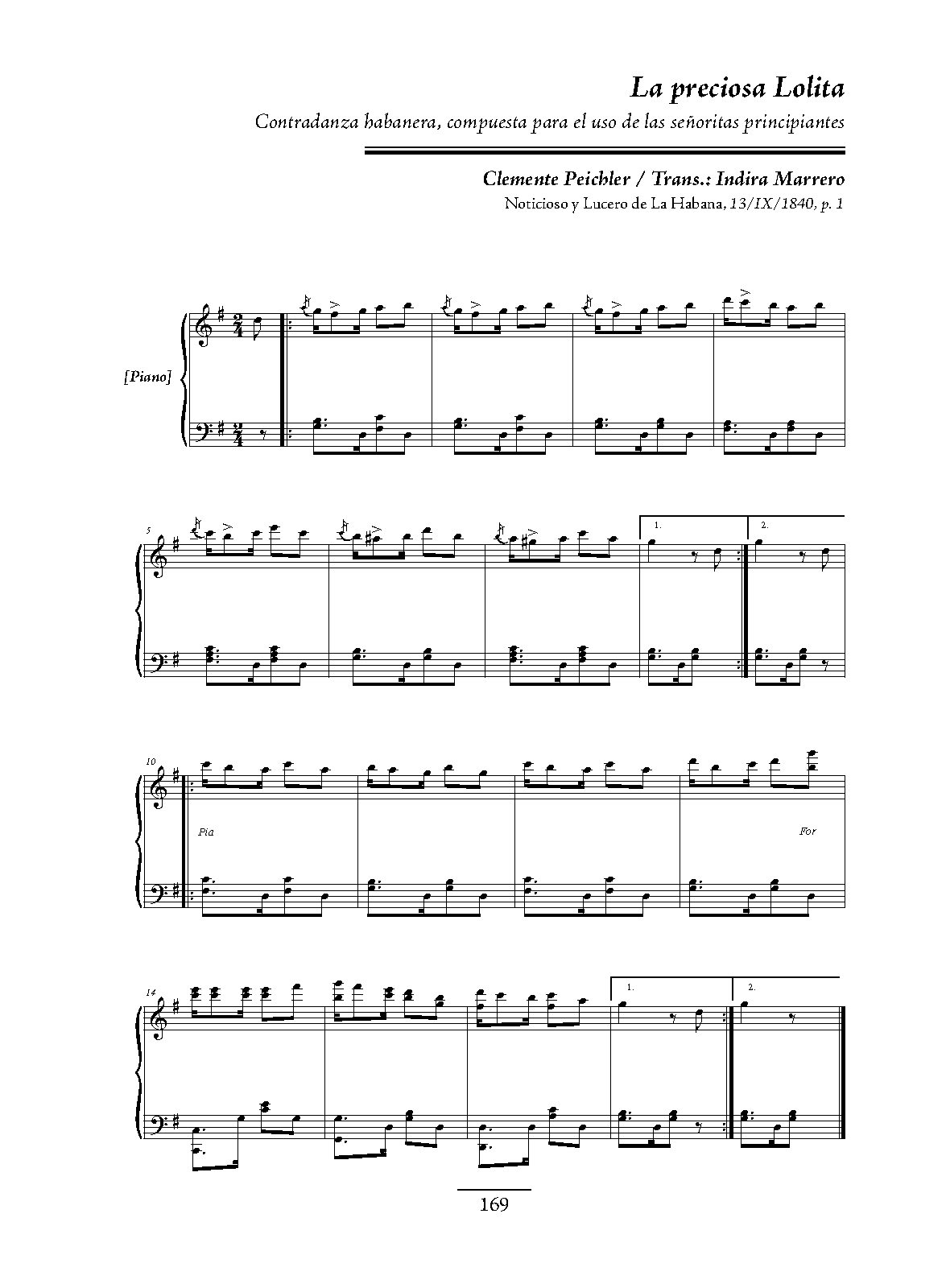 | Alternative. Title | Contradanza habanera, compuesta para el uso de las señoritas principiantes |