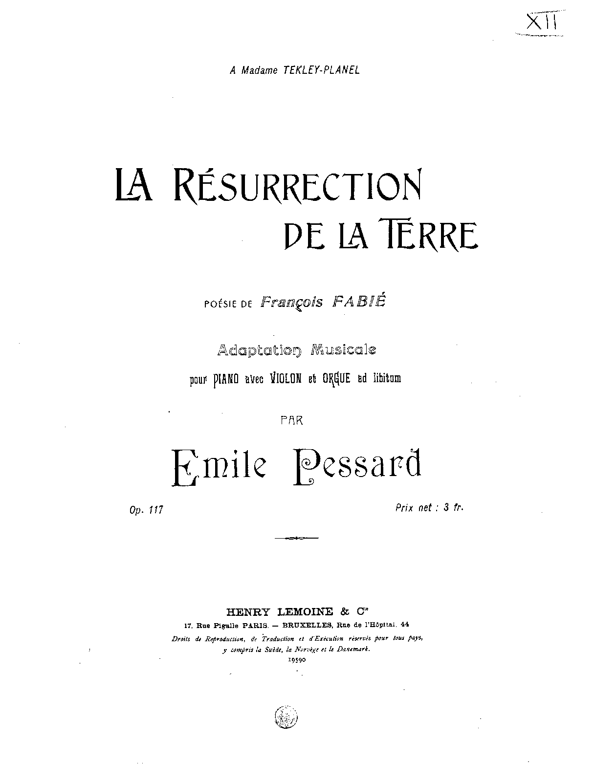 | Dedication | À Madame Tekley-Planel |
