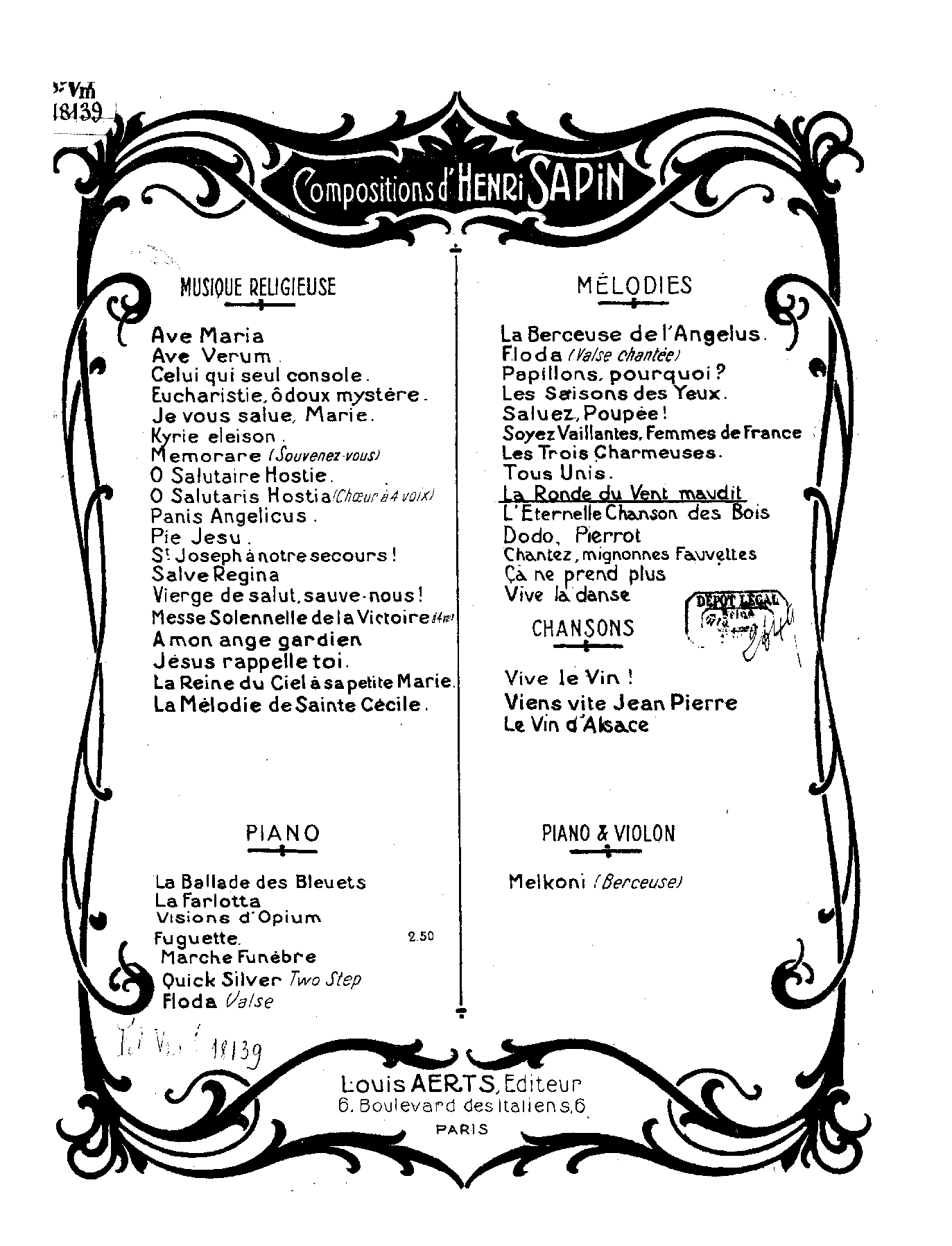 | Dedication | à Monsieur Albert Huberty du Théâtre National de l'Opéra |