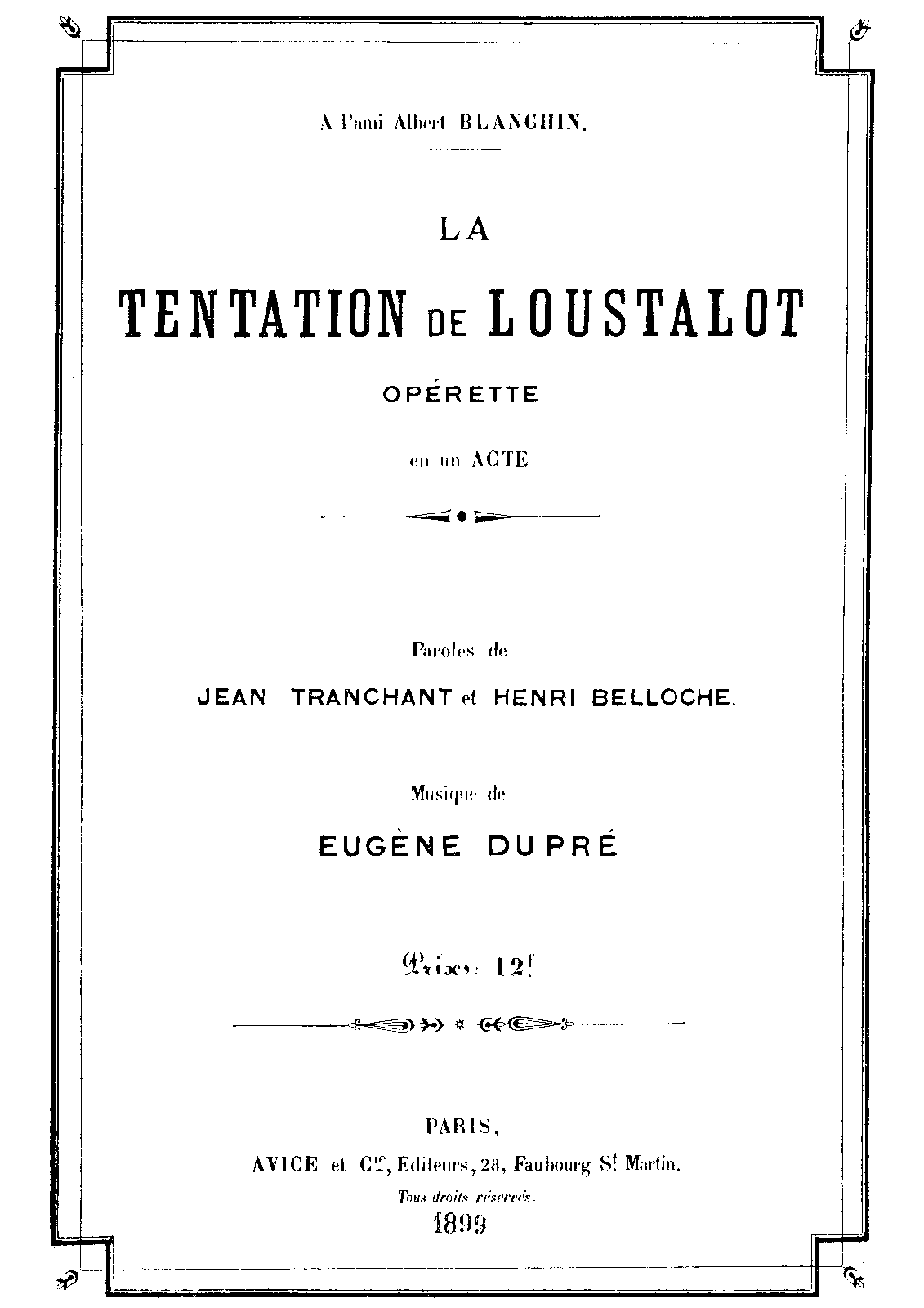 | Dedication | à l'ami Albert Blanchin |