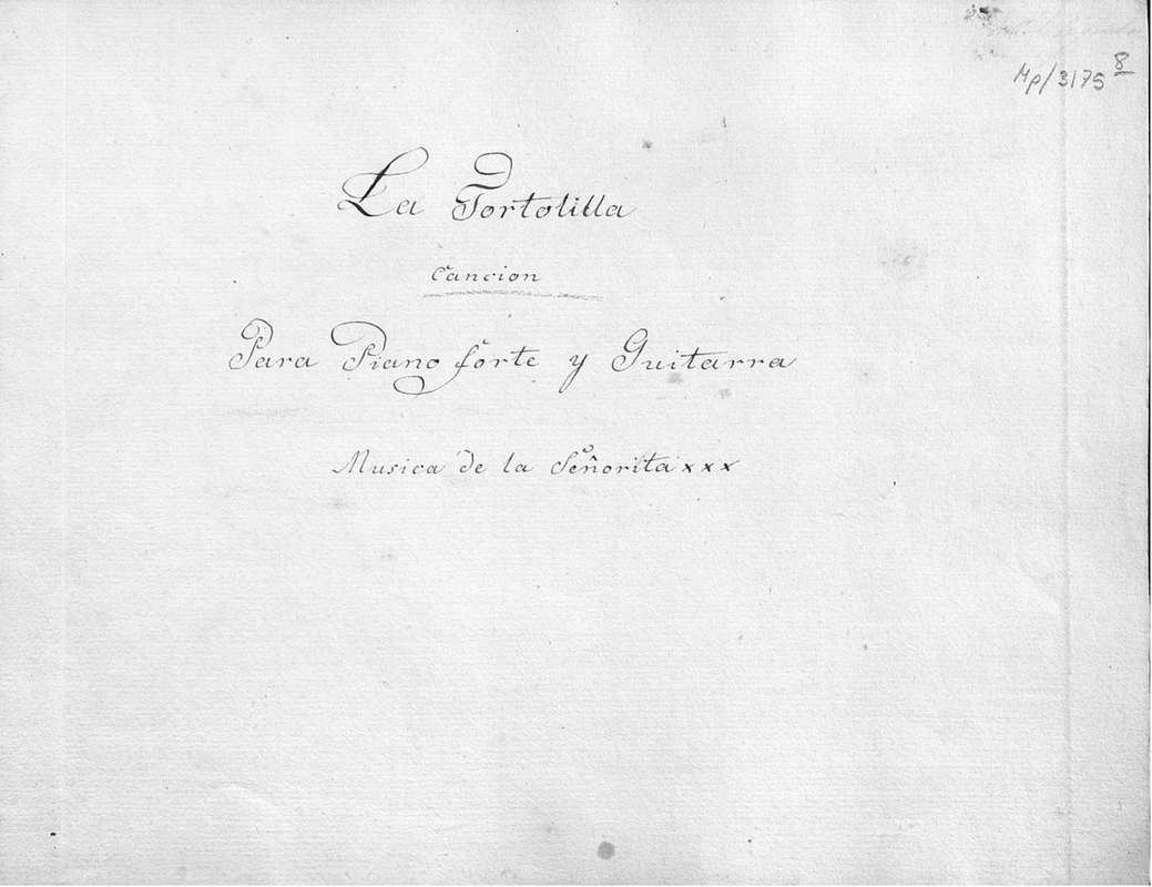 La tortolilla; canción para piano forte y guitarra; música de la señorita xxx
