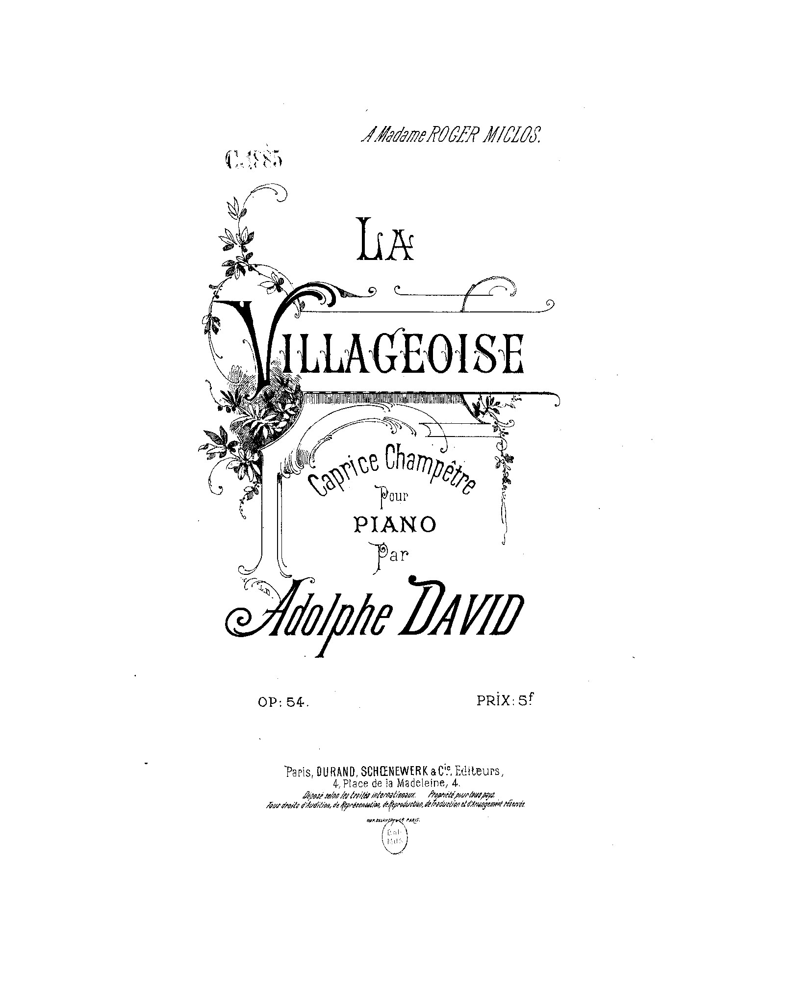 | Dedication | à Madame Marie Roger-Miclos (1860–1951) |