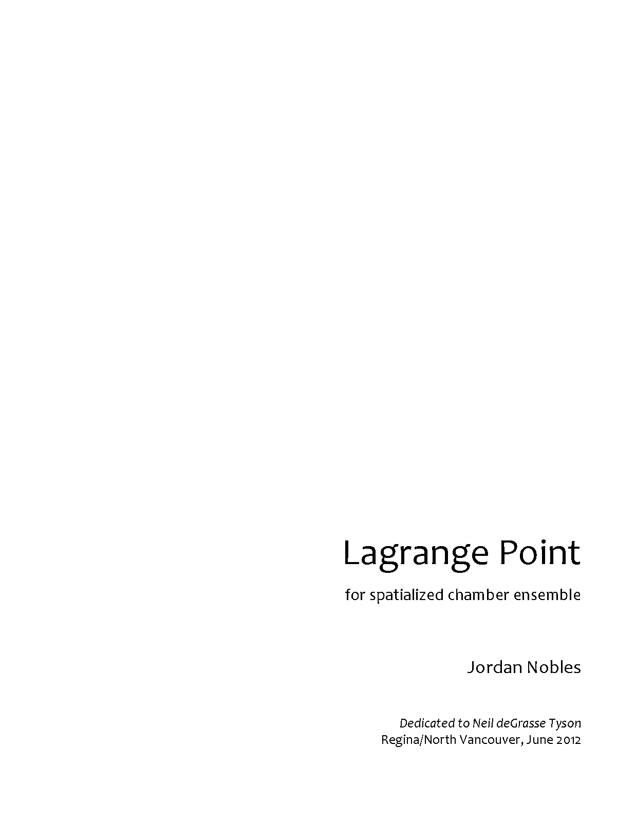 Lagrange Point (2012) – for spatialized chamber ensemble - Parts available for most standard instruments