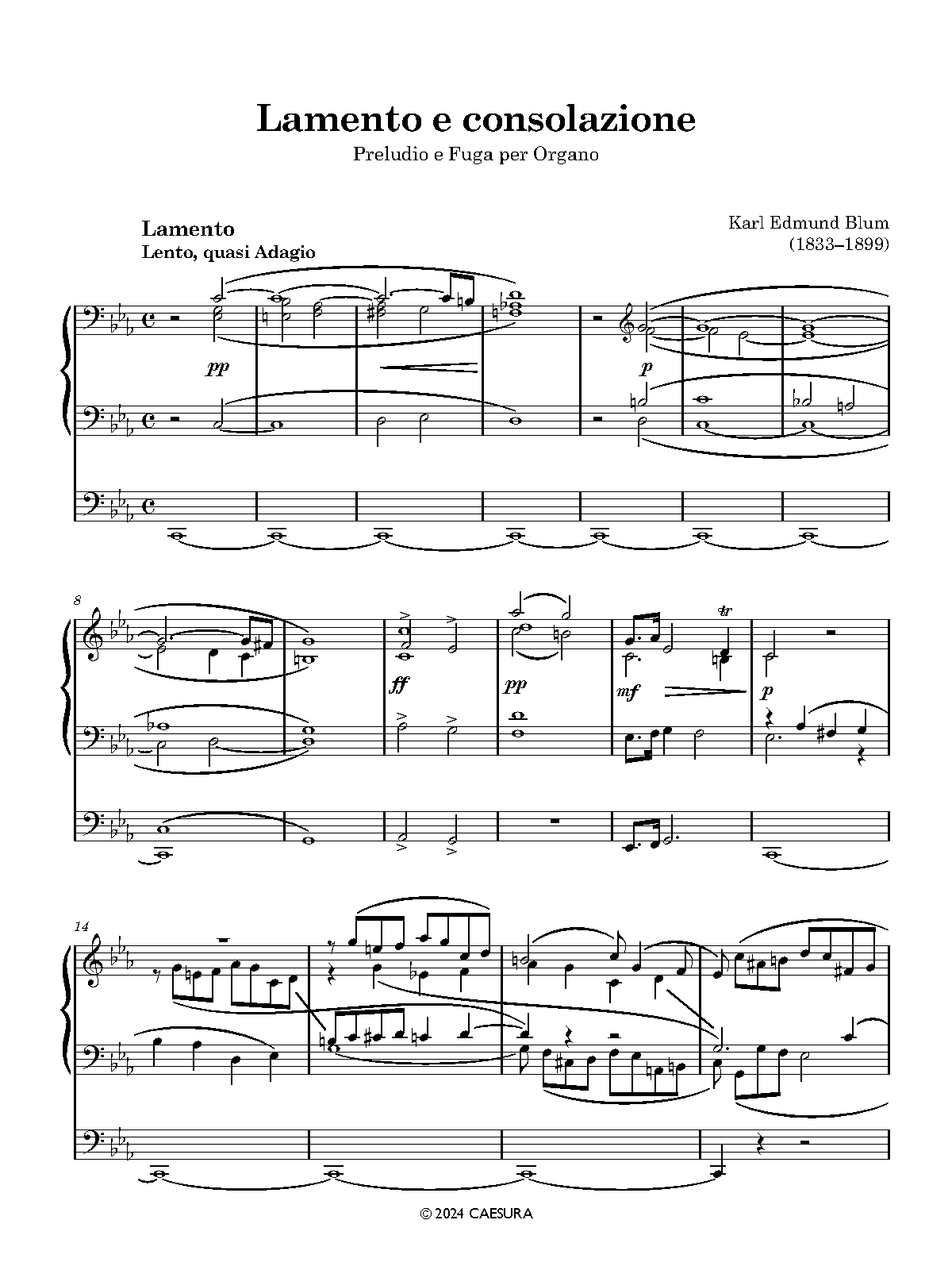 Alternative. Title Preludio e Fuga (Lamento, e Consolazione,) per Organo / Plainte et Consolation dans la souffrance
