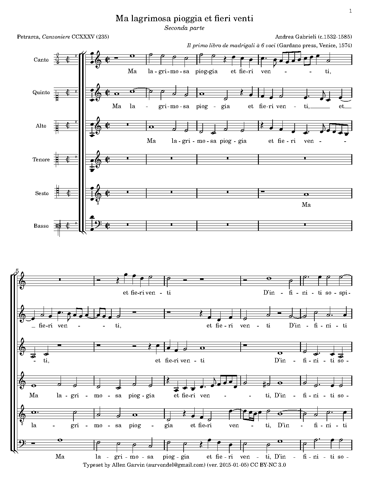 | First Publication | 1574 in Il primo libro de madrigali a 6 voci (nos.15-16) |