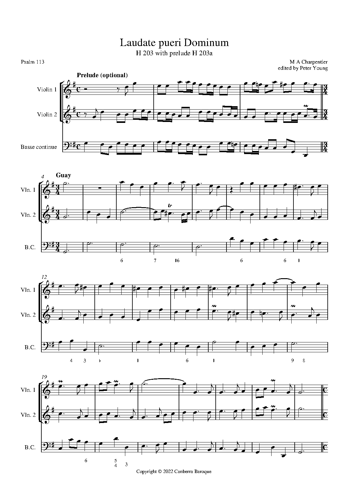 | Extra Information | Prelude for 2 violins and continuo (H. 203a) is optional. |