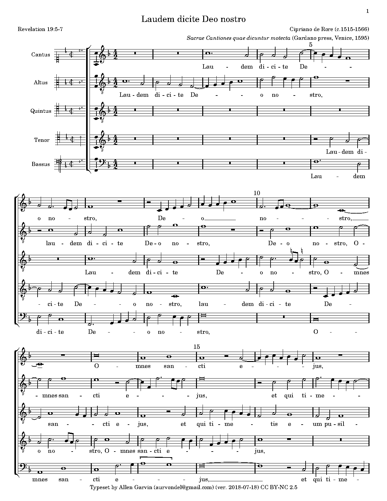 | First Publication | 1595 in Sacrae Cantiones quae dicuntur motecta (Venice: Gardano Press) |