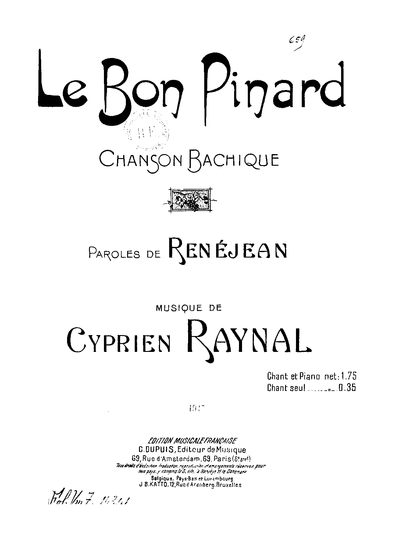 Publisher. Info. Paris: C. Dupuis, n.d.[1917]. Plate C.D.356.