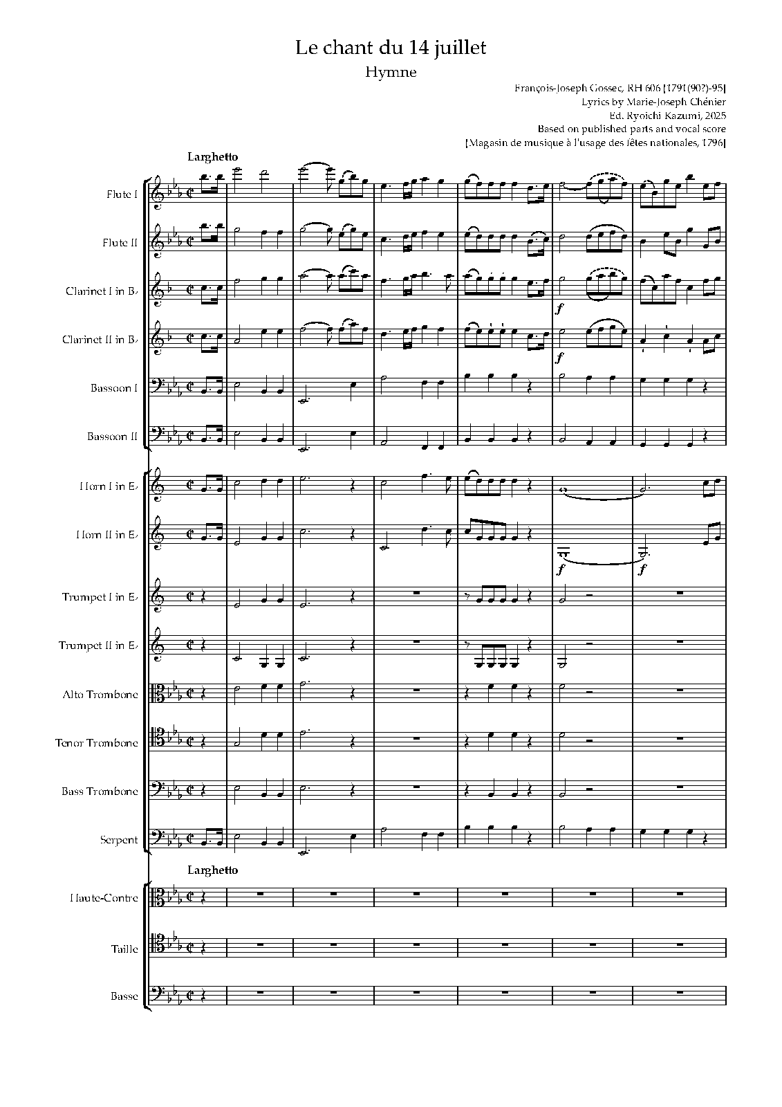 | InstrDetail | 2 flutes, 2 clarinets, 2 bassoons, 2 horns, 2 trumpets, 3 trombones, serpent |