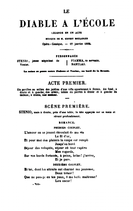 | Alternative. Title | The Devil at the School, Comic Opera in One Act |