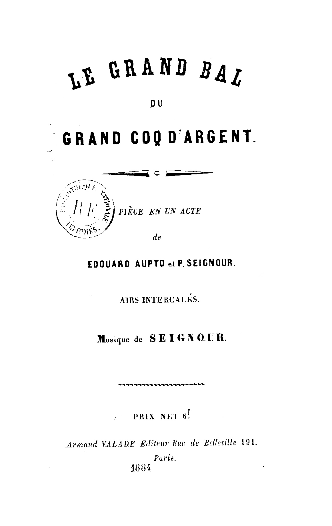 | Librettist | Édouard Aupto (fl.1870-90) and Composer |