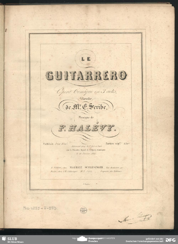 | First Performance. | 1841 — Paris, Opéra-Comique |