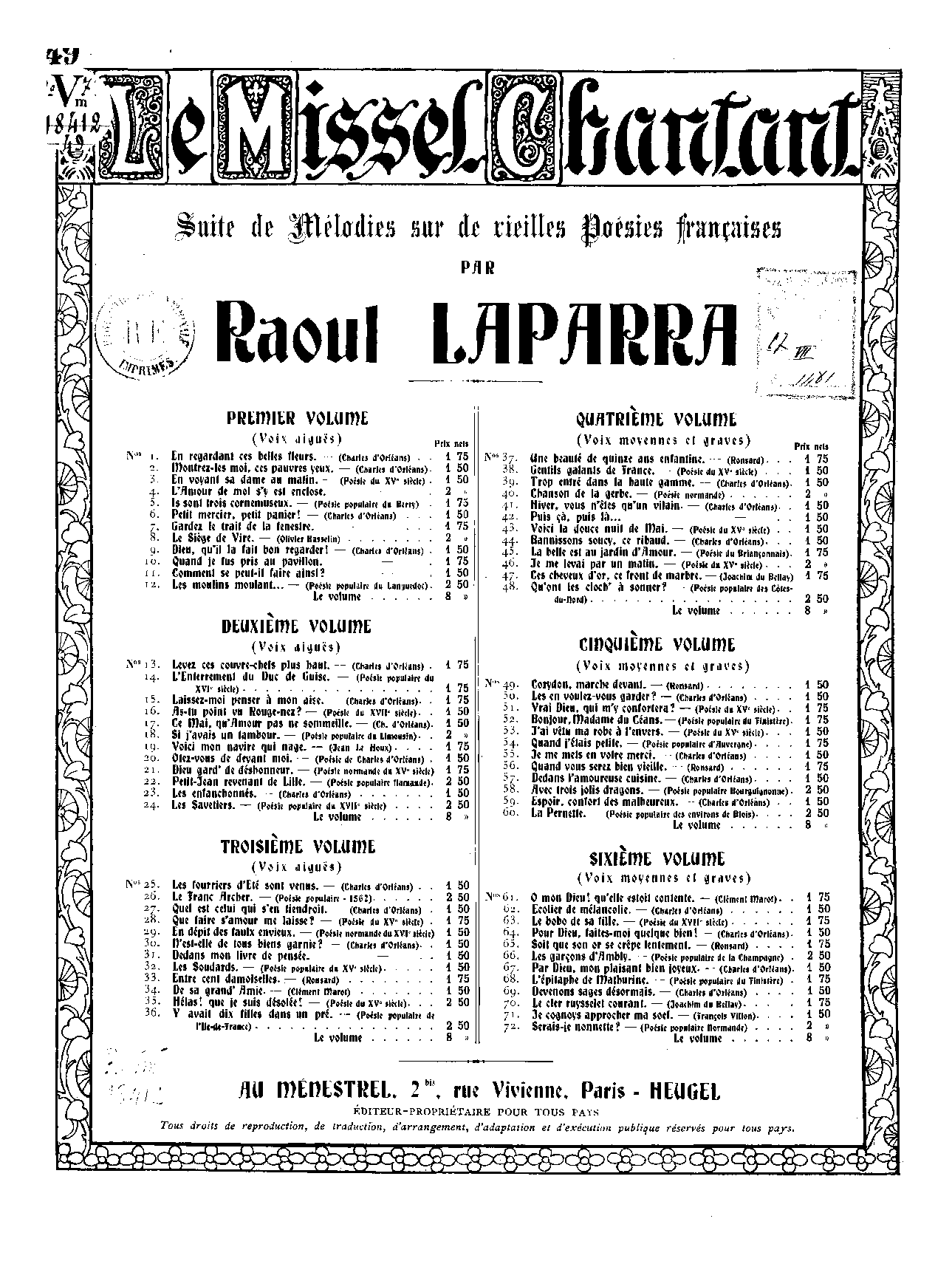 - Petit mercier, petit panier! Chanson (A minor) - poésie de Charles d'Orléans