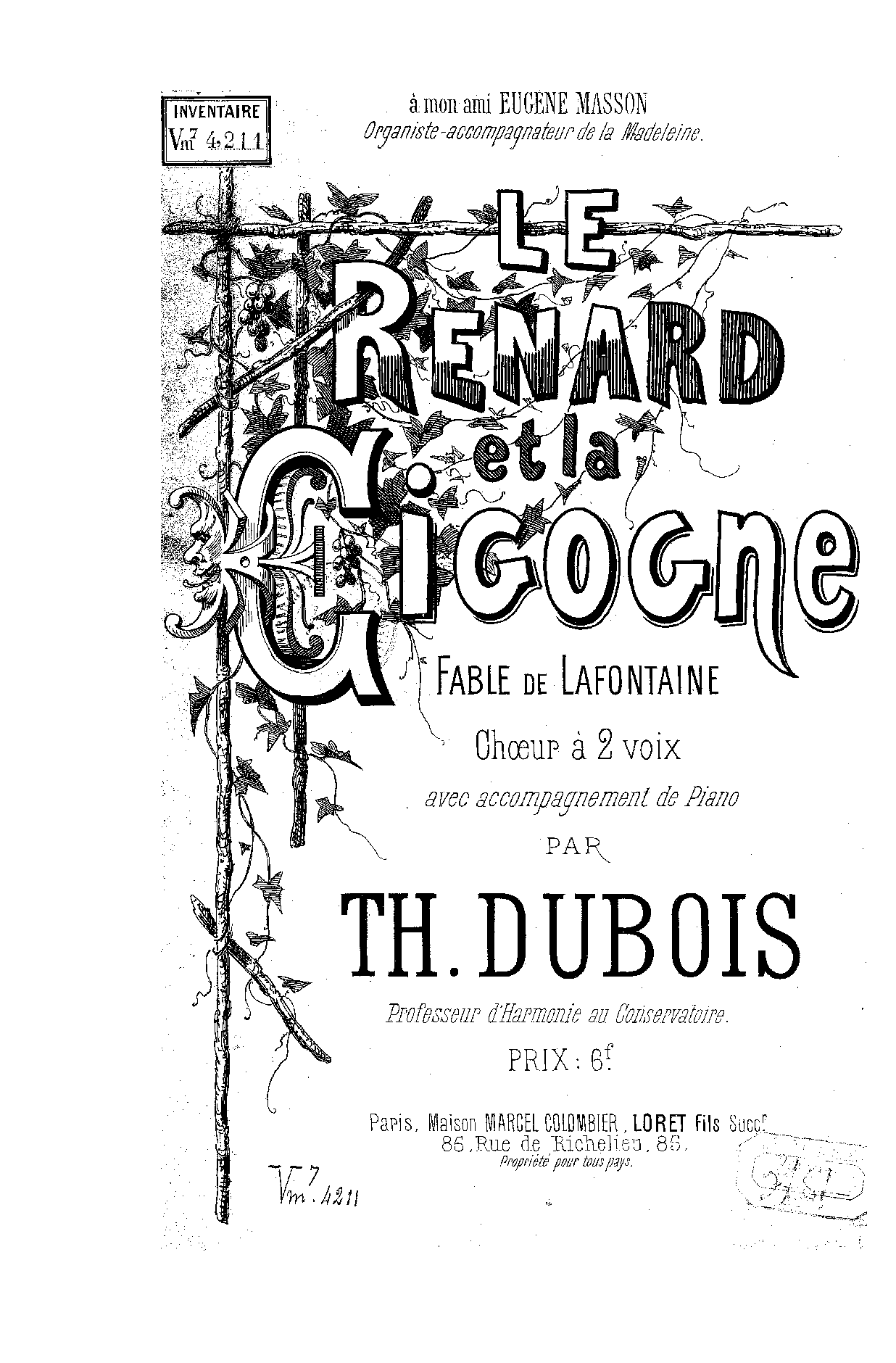Fable de La Fontaine. Chœur à 2 voix