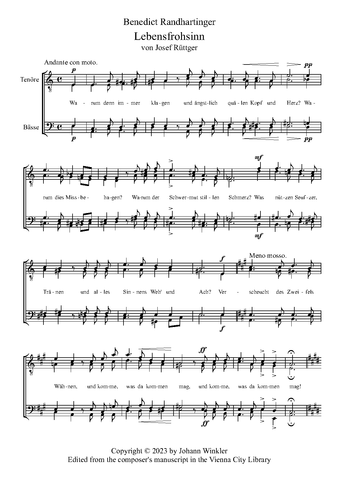 | Genre Categories | Songs; For male chorus; Scores featuring male chorus; |