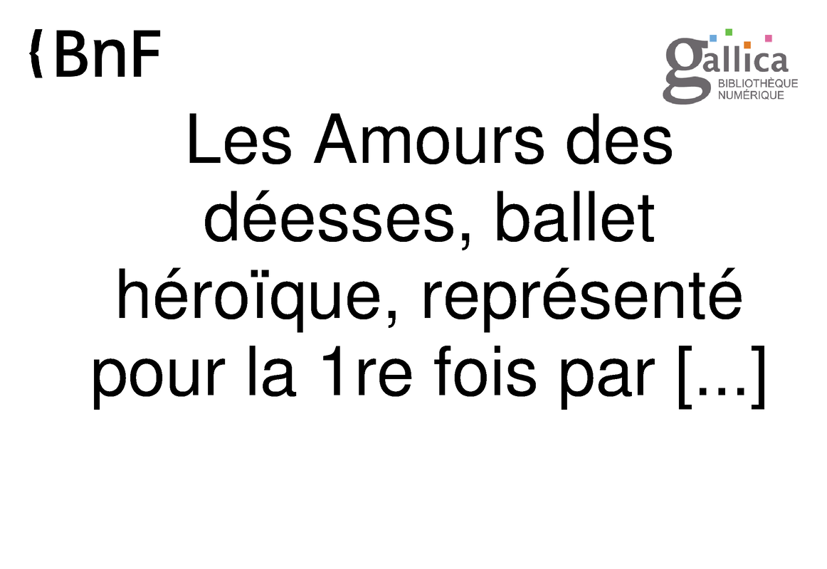 | Genre Categories | Ballets heroiques; Theatrical Works; Ballets; |