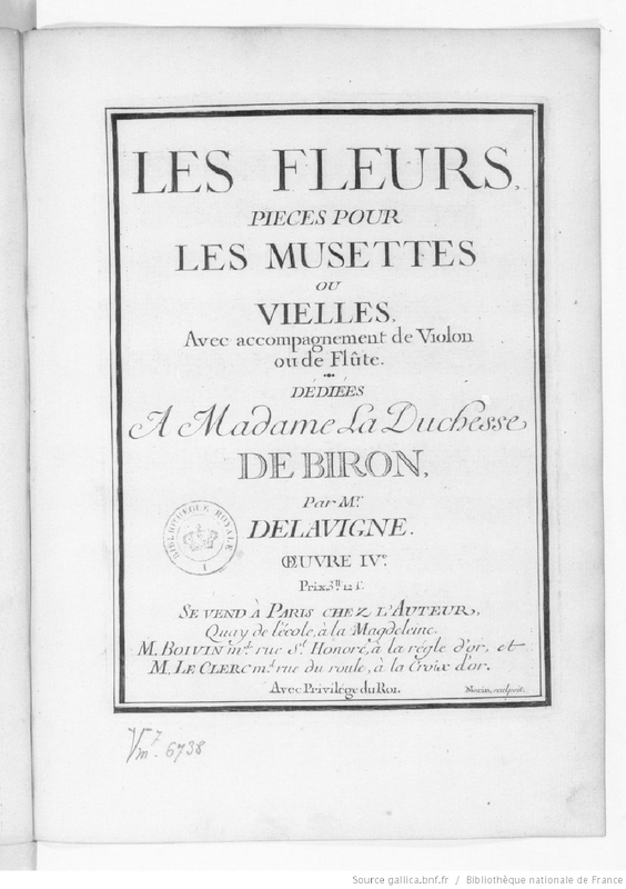 | Work Title | Les Fleurs, pièces pour les musettes ou vielles avec accompagnement de violon ou de flûte, Œuvre IVe |