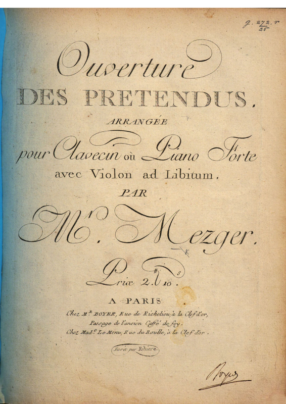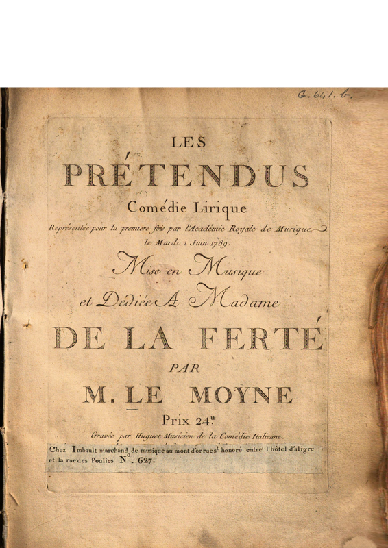 | Alternative. Title | Les Prétendus. Comédie Lirique |