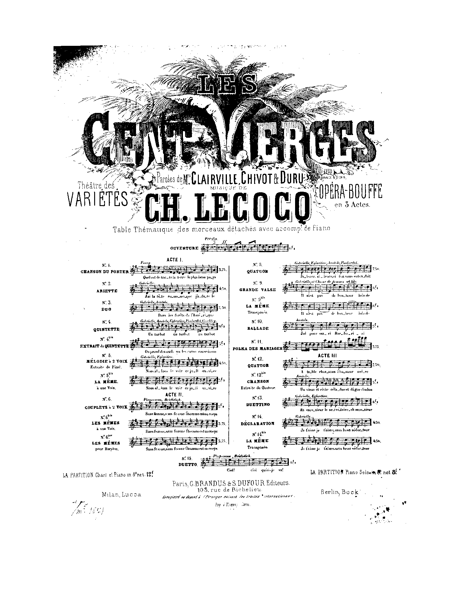 | Librettist | Louis Clairville (1811-1879) Henri Chivot (1830-1907) Alfred Duru (1829-1899) |