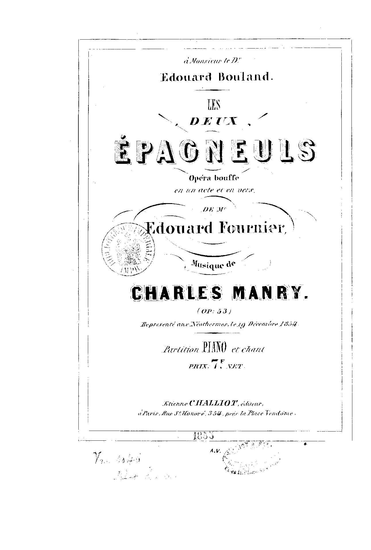 | Copyright Information | Publication noted in the Bibliographie de la France 45e année, Nº 5, 2 Février 1856, p.128, reg.384 (vocal score). |