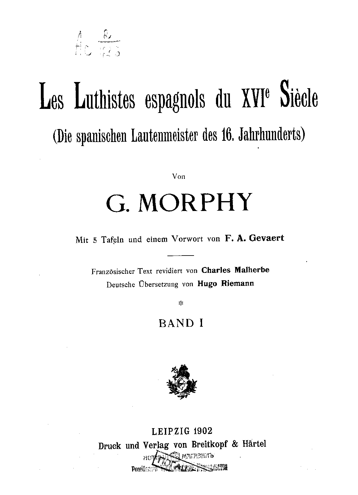 Charles Malherbe (1853-1911) François-Auguste Gevaert (1828-1908), preface and tables