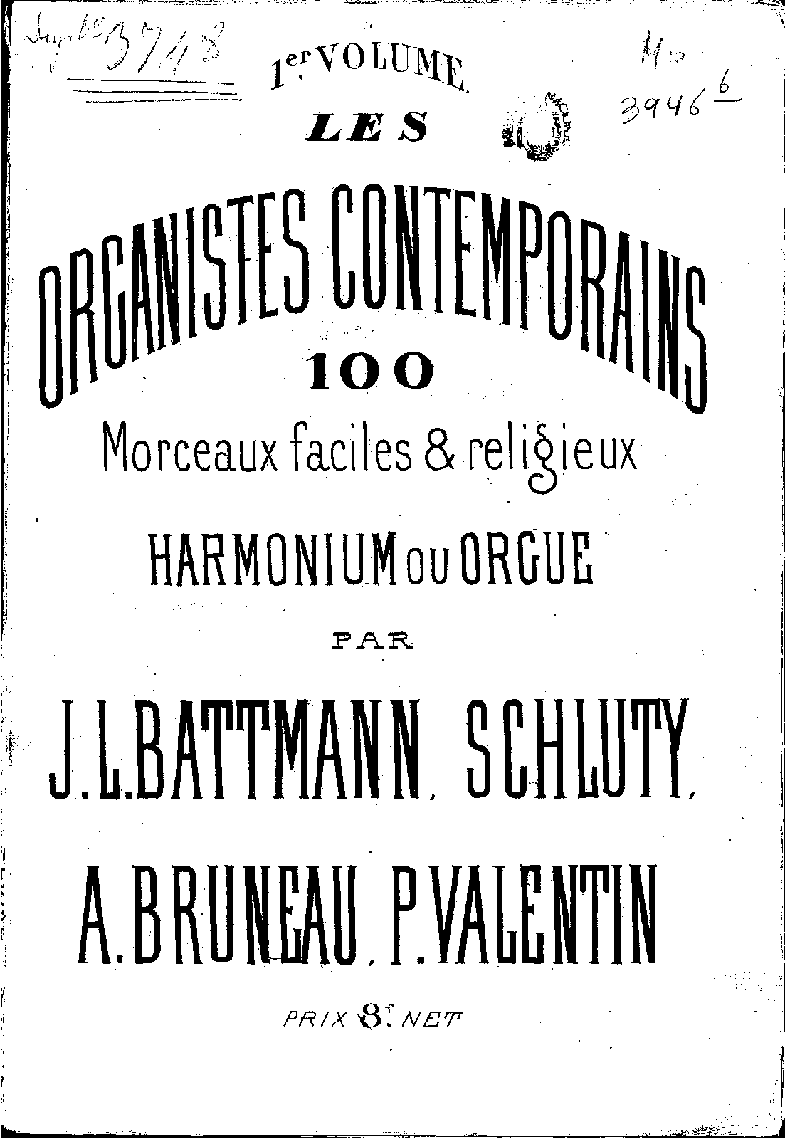 The only score that appears to be mentioned anywhere is volume 1 entitled: 1er. volume: 100 morceaux faciles & réligieux pour harmonium ou orgue par J.L. Battmann, Schluty, A. Bruneau, P. Valentin. Were any other volumes ever issued?