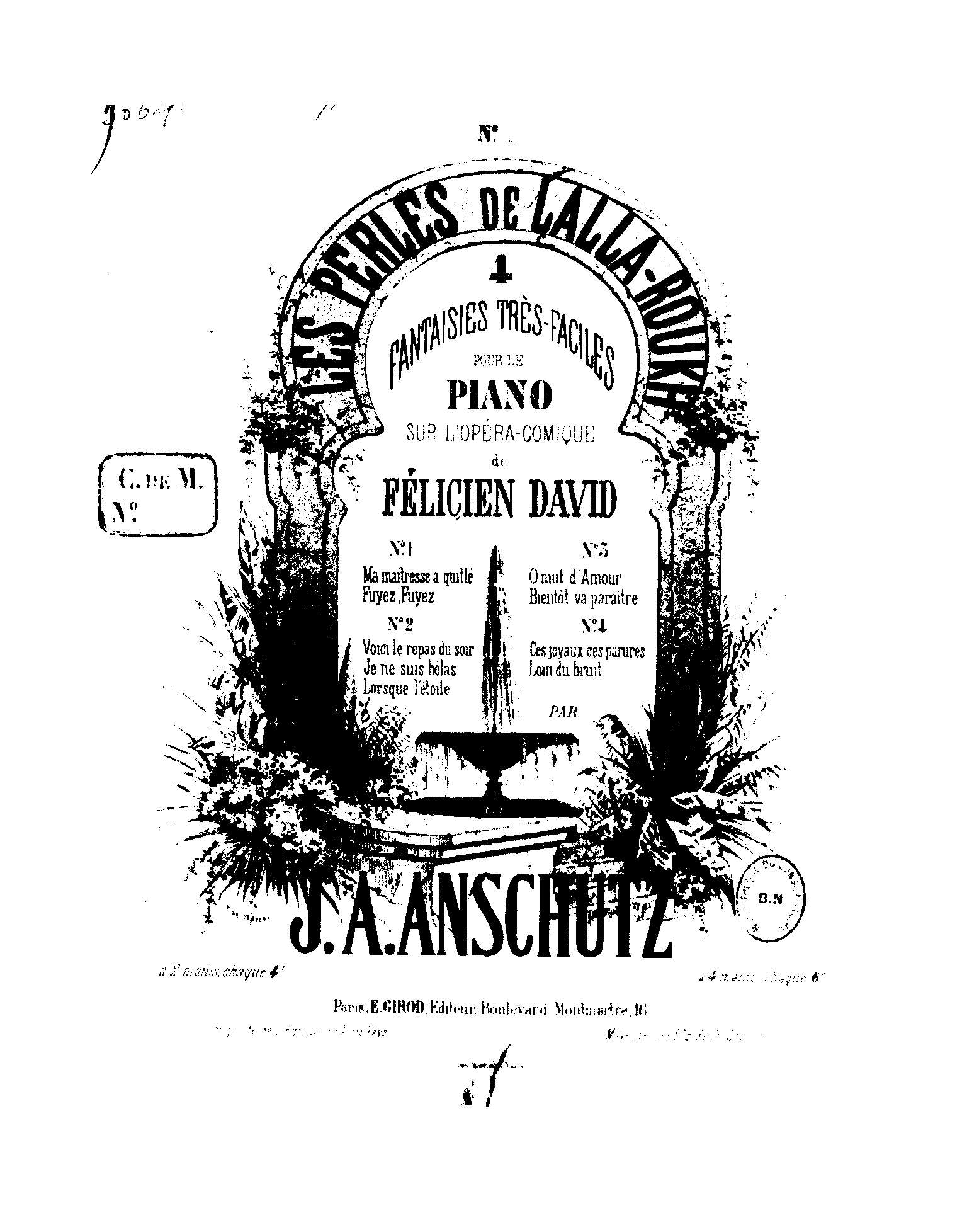 Alternative. Title Quatre fantaisies très-faciles sur l'opéra-comique de Felicien David