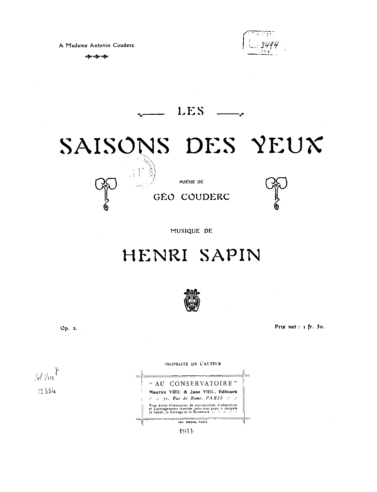 | Genre Categories | Songs; For voice, piano; For voices with keyboard; |