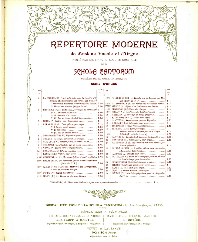 | Genre Categories | Vespers; Religious works; For organ; |