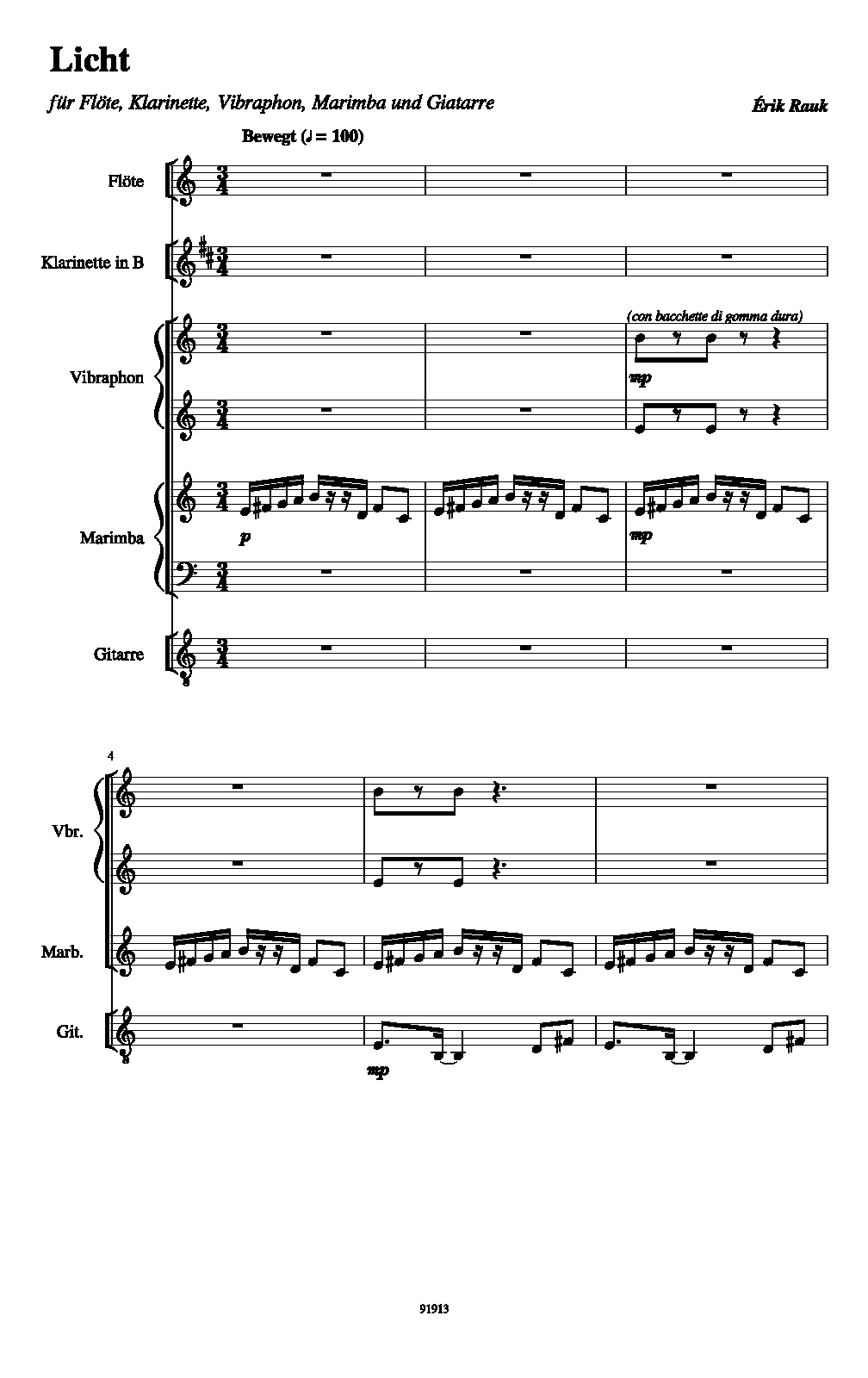 | Genre Categories | Pieces; For flute, clarinet, marimba, vibraphone, guitar; Scores featuring the flute; |