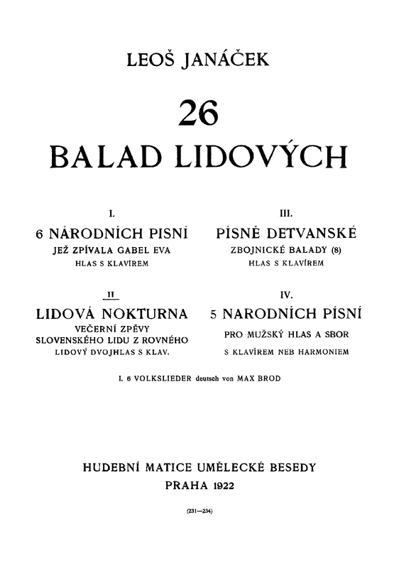 | Extra Information | Volume II of the collection 26 Balad lidových (26 Folk Ballads) |