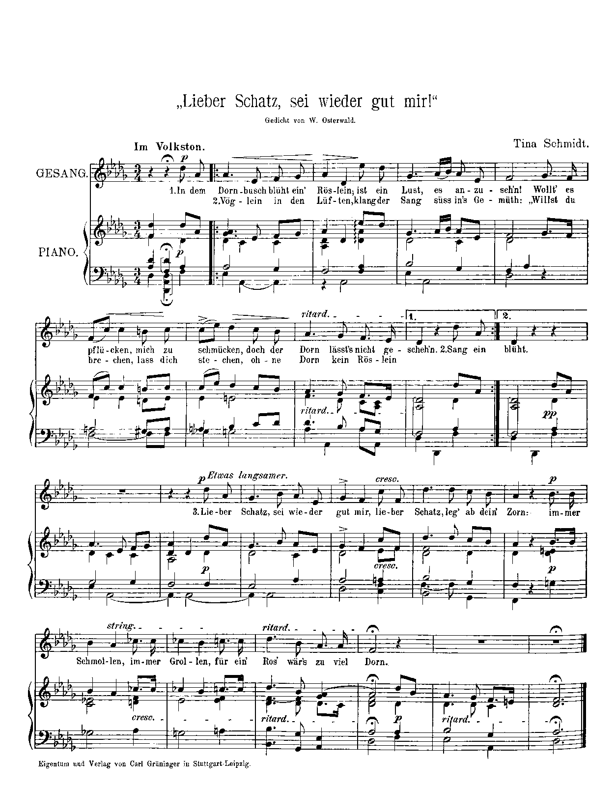 | Work Title | Lieber Schatz, sei wieder gut mir! |