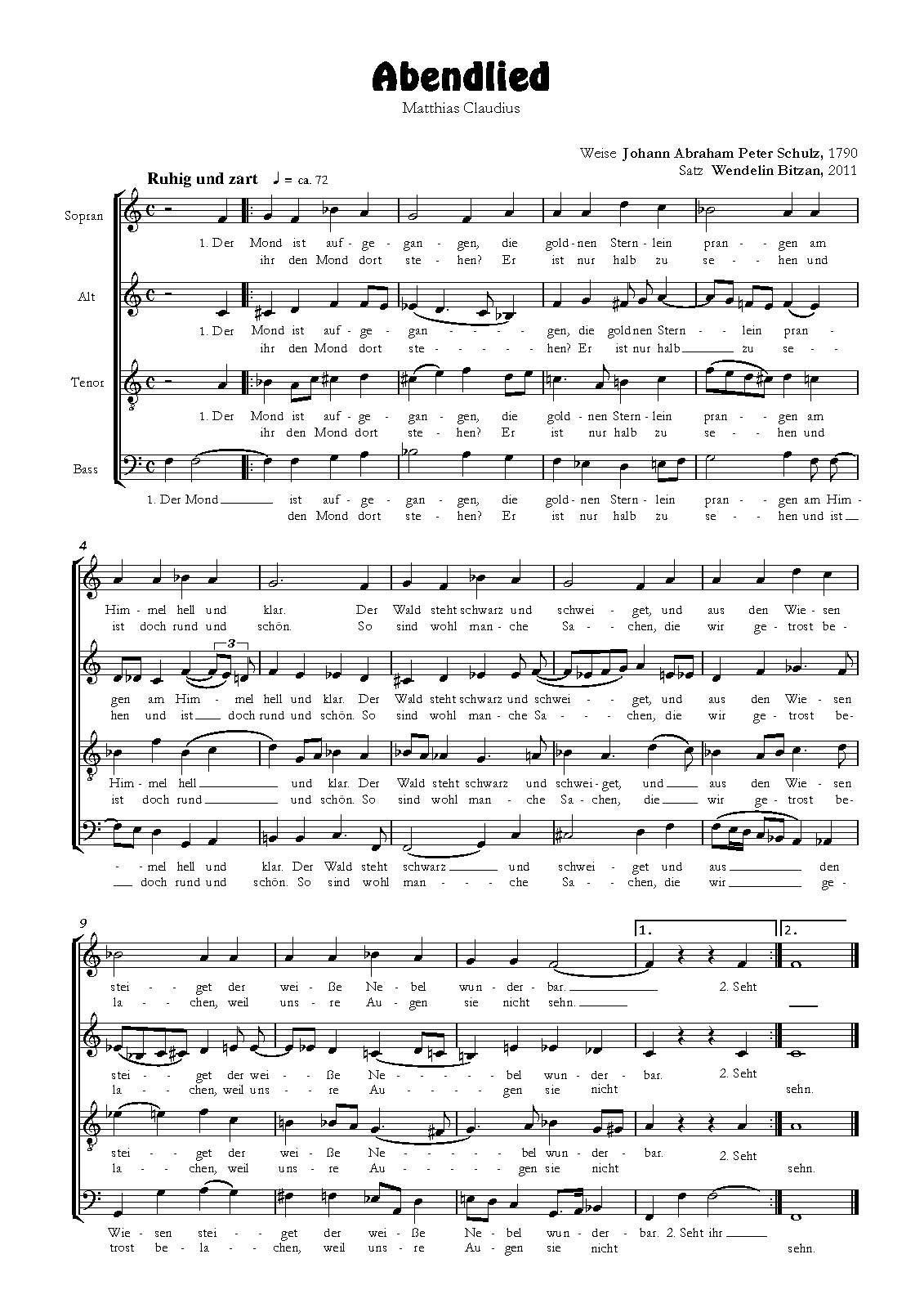 - Abendlied. Der Mond ist aufgegangen