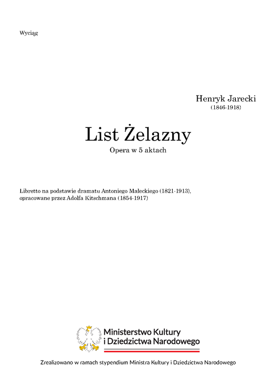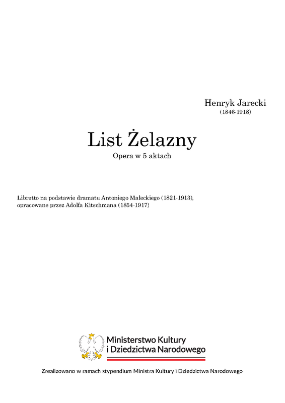 | Librettist | Adolf Kitschman (1854-1917), based on the drama by Antoni Małecki (1821-1913) |