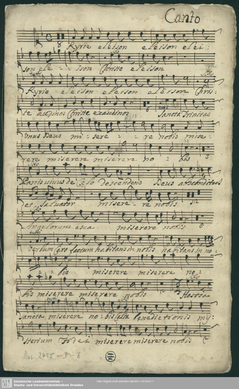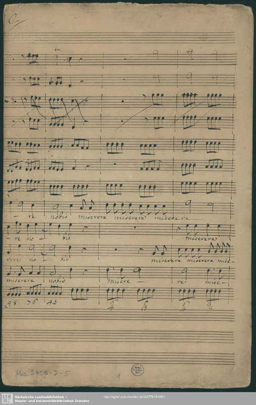 | Instrumentation | Voices: soprano, alto, tenor, bass; mixed chorus Orchestra: 2 corni di caccia, 2 oboes, bassoon, strings (2 violins, viola, cello, bass), continuo (parts marked organo and tiorba) |