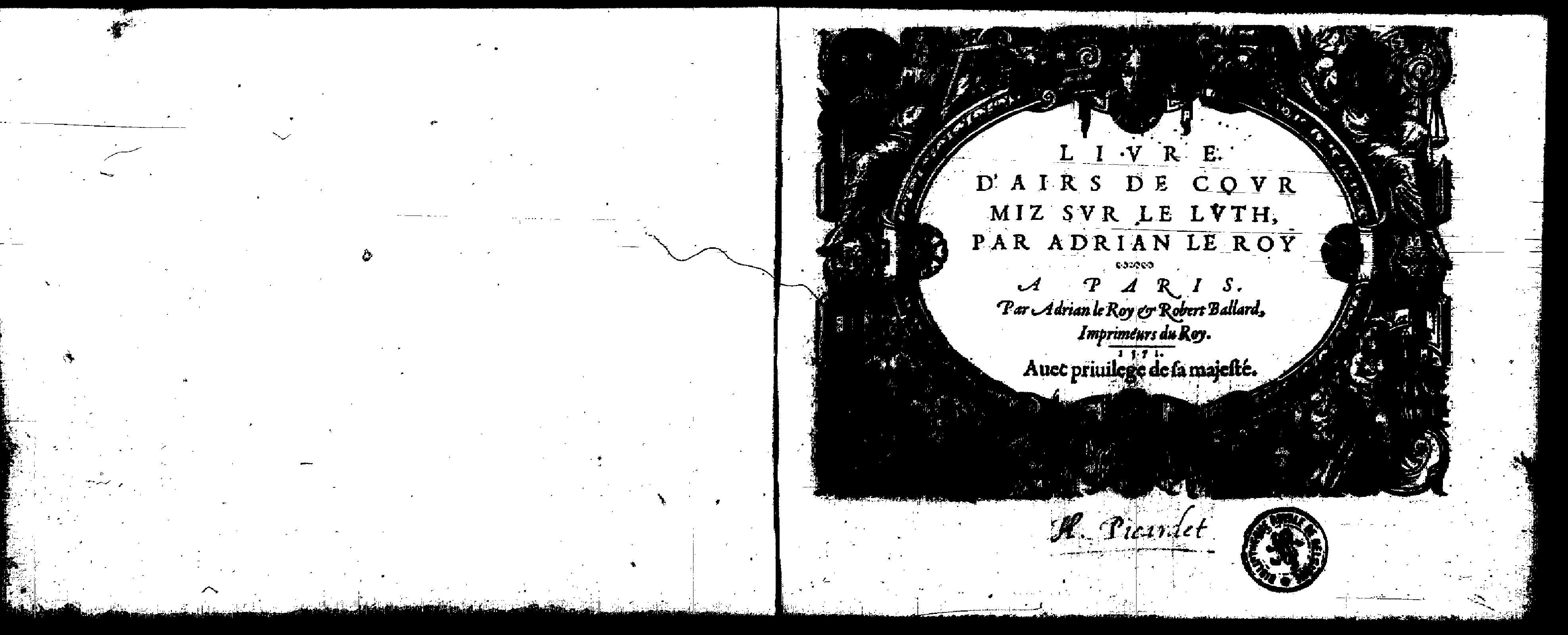Livre d'airs de cour miz sur le luth, par Adrian le Roy / Par Adrian le Roy & Robert Ballard, Imprimeurs du Roy